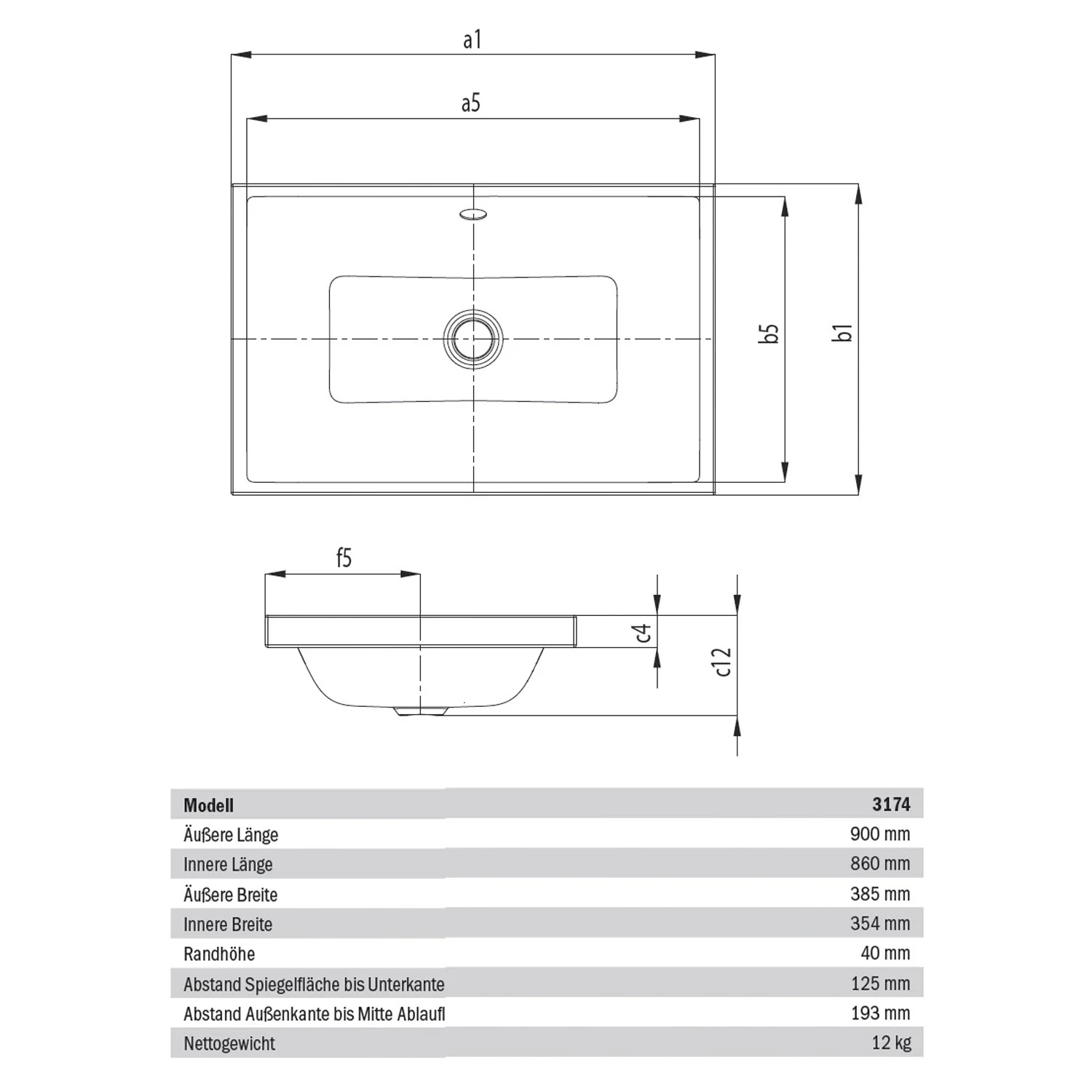 Kaldewei PURO S Aufsatzwaschtisch 3174, 90 cm