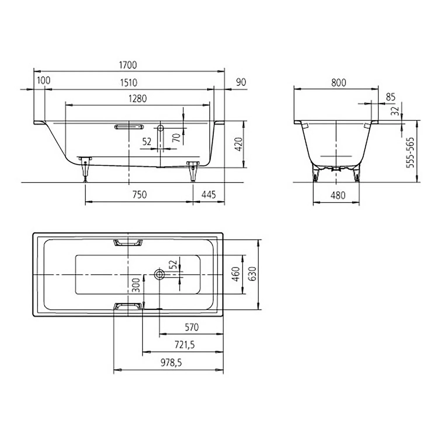 Kaldewei PURO STAR Mod. 694 Badewanne 170 x 80 cm, mit seitl. Überlauf rechts, mit Grifflöcher