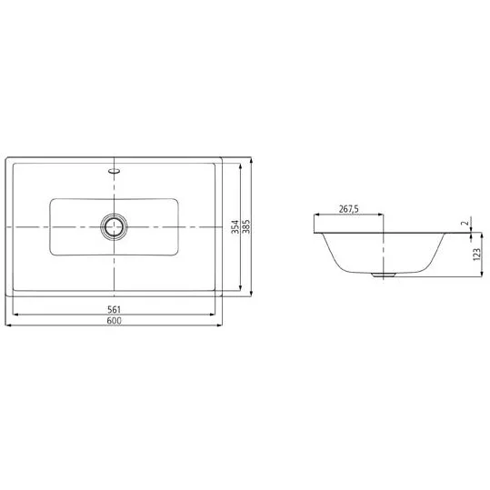 Eleganter Rechteckwaschtisch in klassisch puristischem Design und klarer, zeitloser Form.