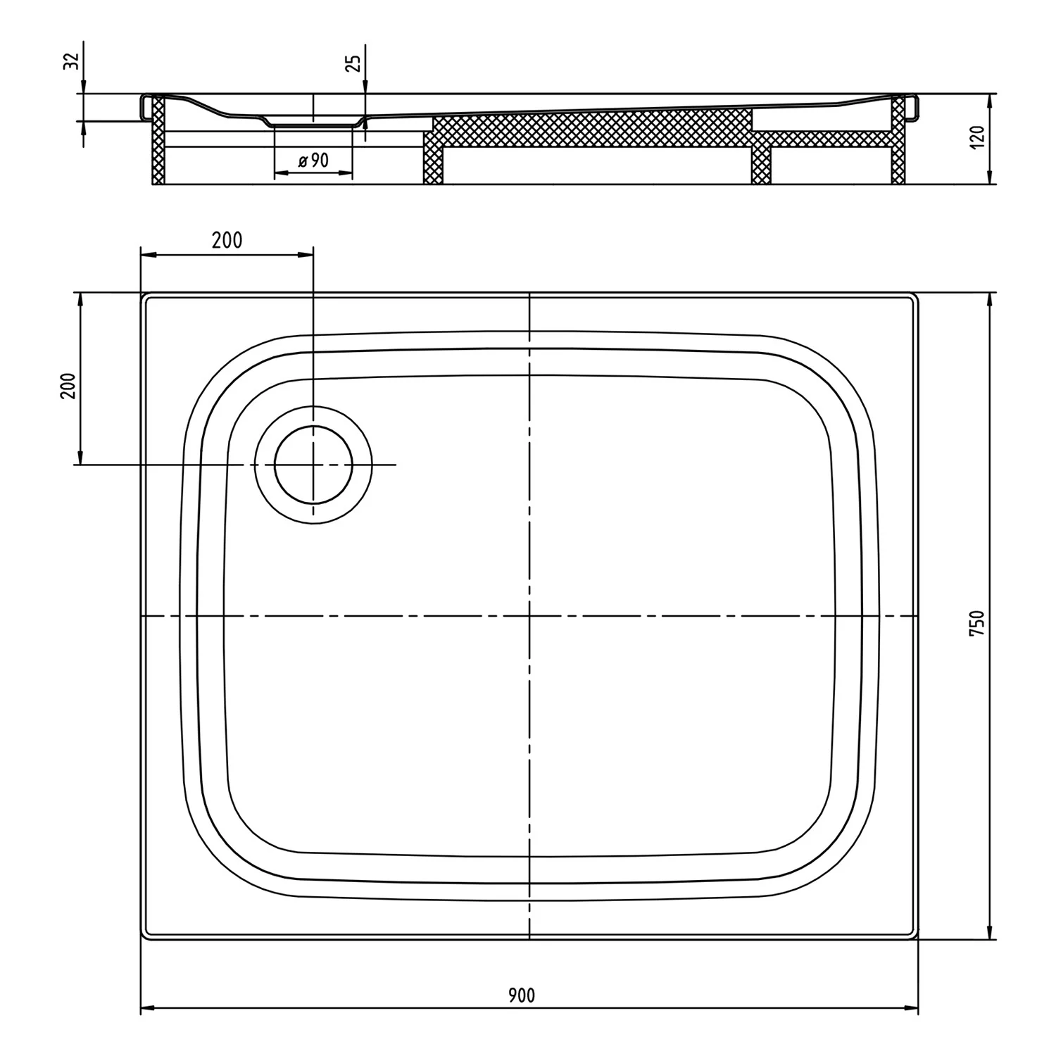 Kaldewei SUPERPLAN CLASSIC 387-2 Duschwanne 75 x 90 cm, inkl. Wannenträger
