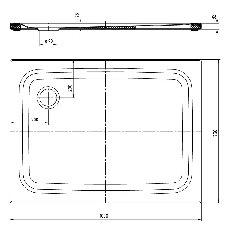 Kaldewei SUPERPLAN CLASSIC 402-5 Duschwanne 75 x 100 cm, inkl. Wannenträger extraflach
