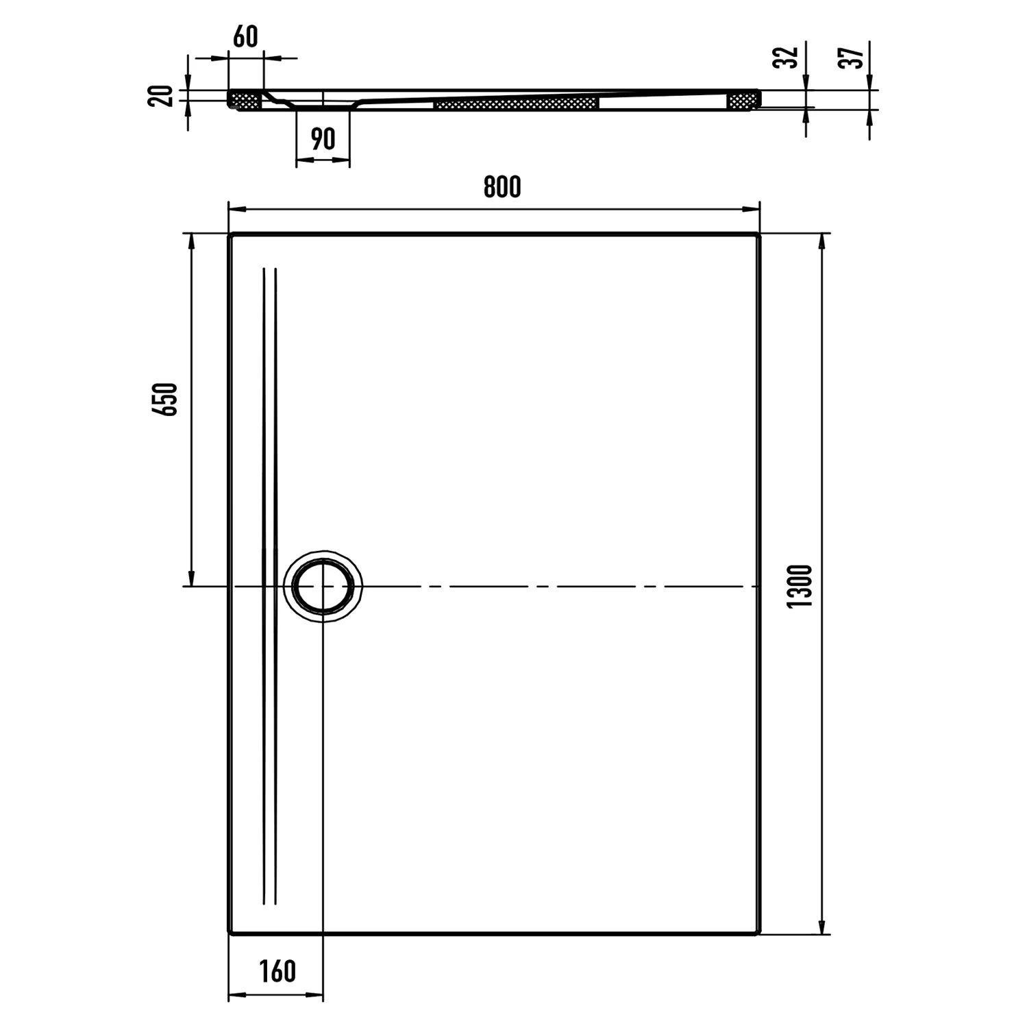 Kaldewei SUPERPLAN ZERO 1566-5 Duschwanne 80 x 130 cm, inkl. Wannenträger extraflach