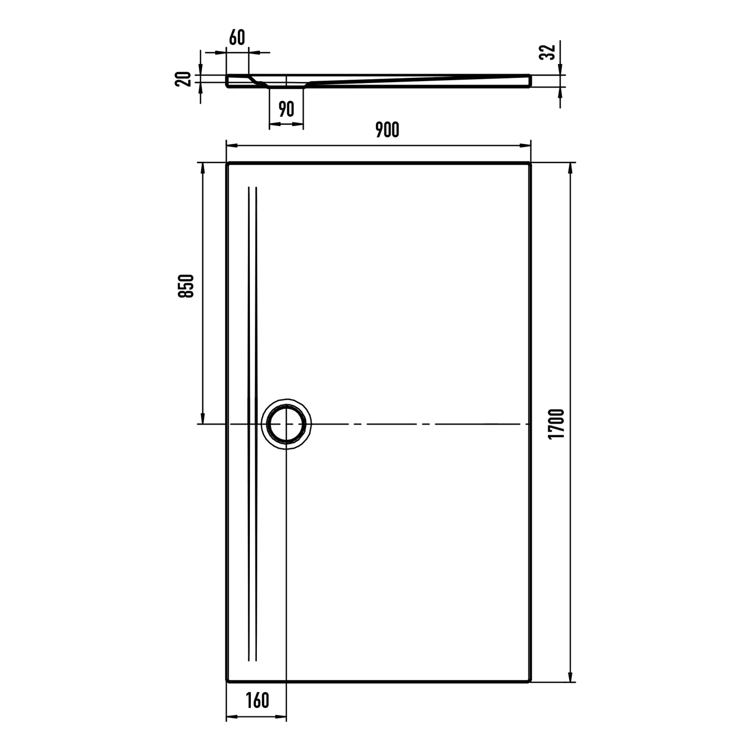 Kaldewei SUPERPLAN ZERO 1610-1 Duschwanne 90 x 170 cm mit Secure Plus