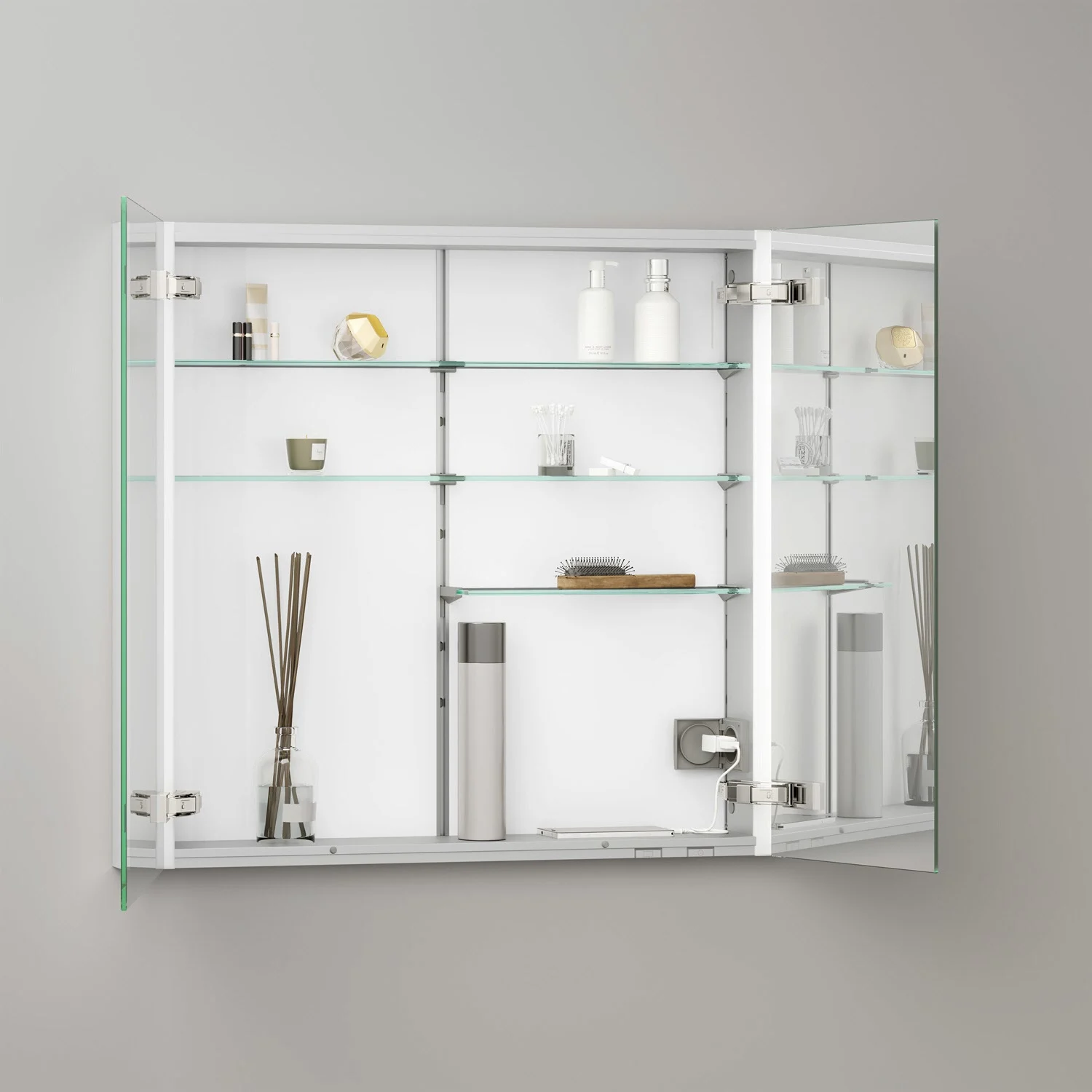 Keuco Royal Metis LED Unterputz-Spiegelschrank 80 x 71 cm, 2 Türen mit Spiegelheizung, asymmetrisch, schweizer Ausführung