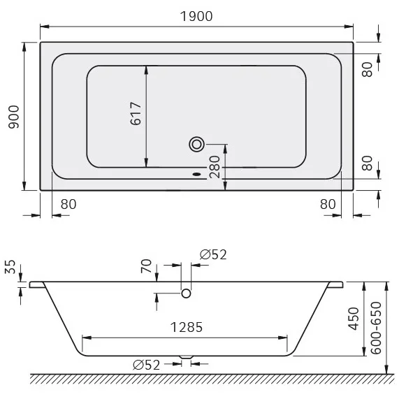 Kronenbach Cube Duo-Badewanne 190 x 90 cm