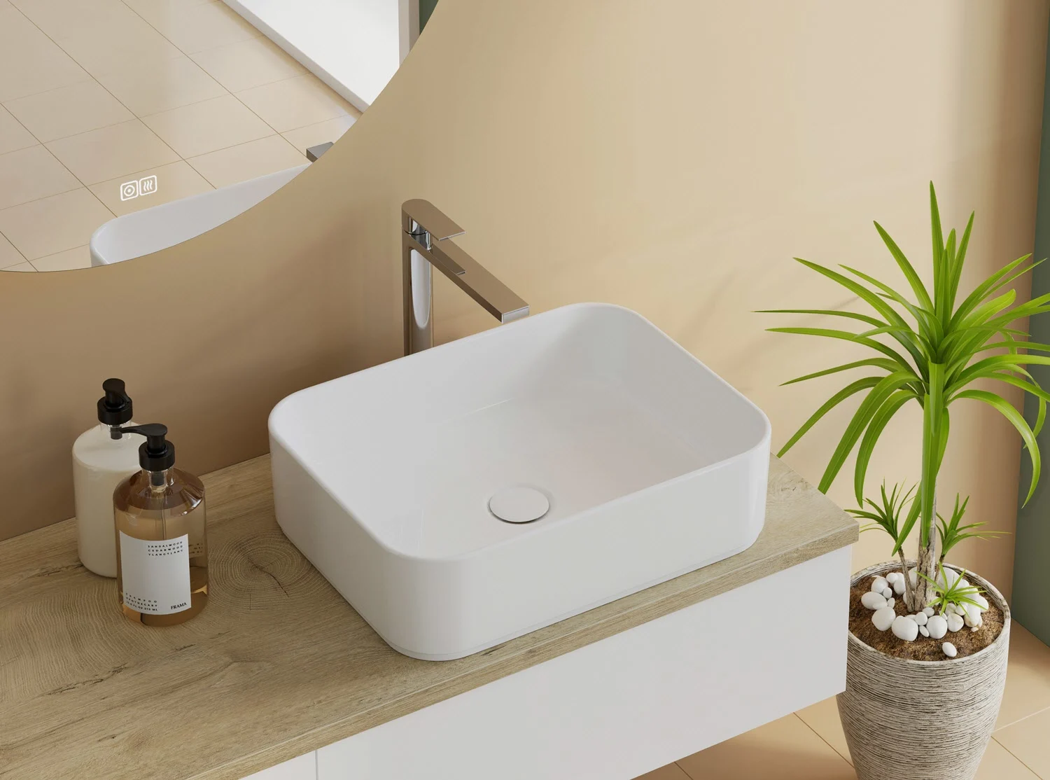 Waschtisch und Armatur sind nicht im Lieferumfang enthalten.