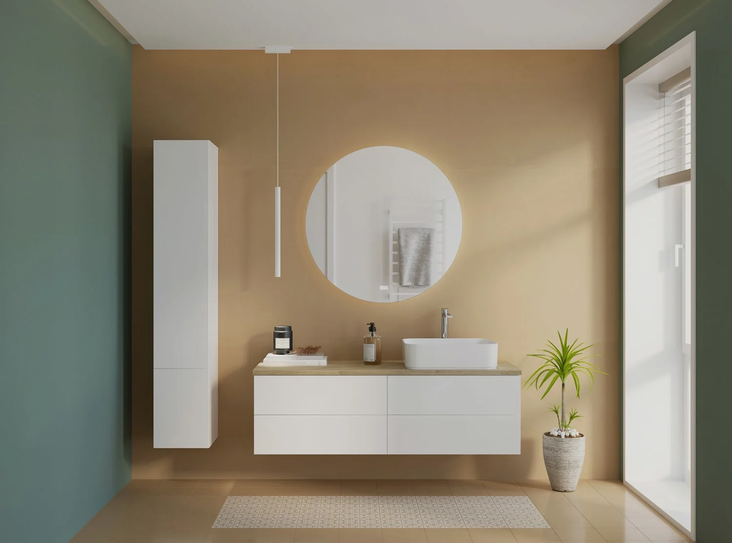 Der Waschtischunterschrank mit Siphonausschnitt kann links oder rechts montiert werden.