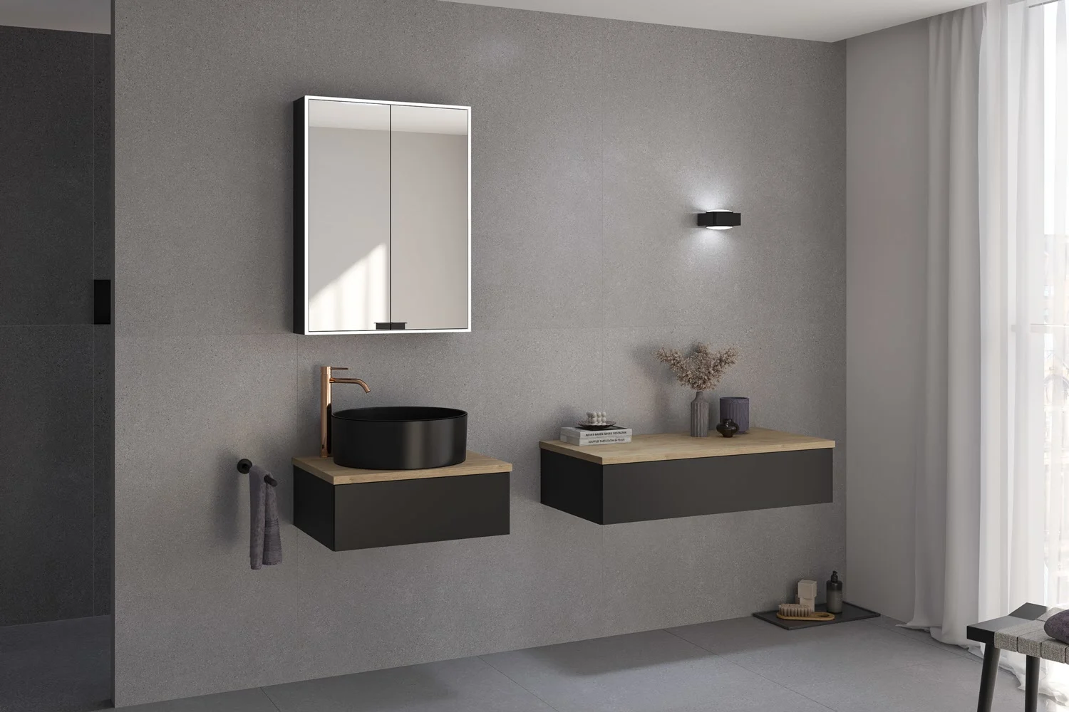 Waschtisch und Armatur sind nicht im Lieferumfang enthalten.