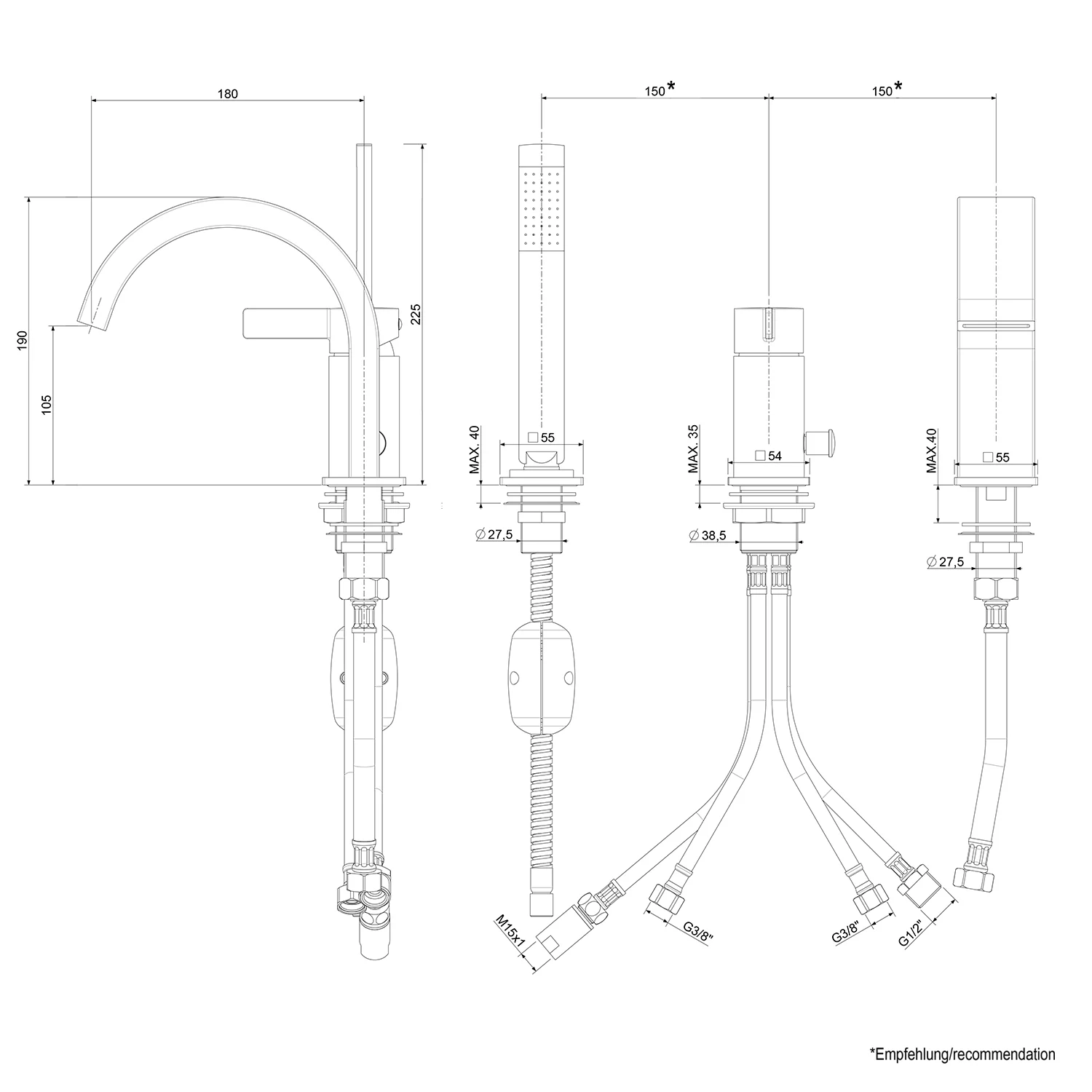 | Ausführung: | für Wannen-/ Fliesenrandmontage |