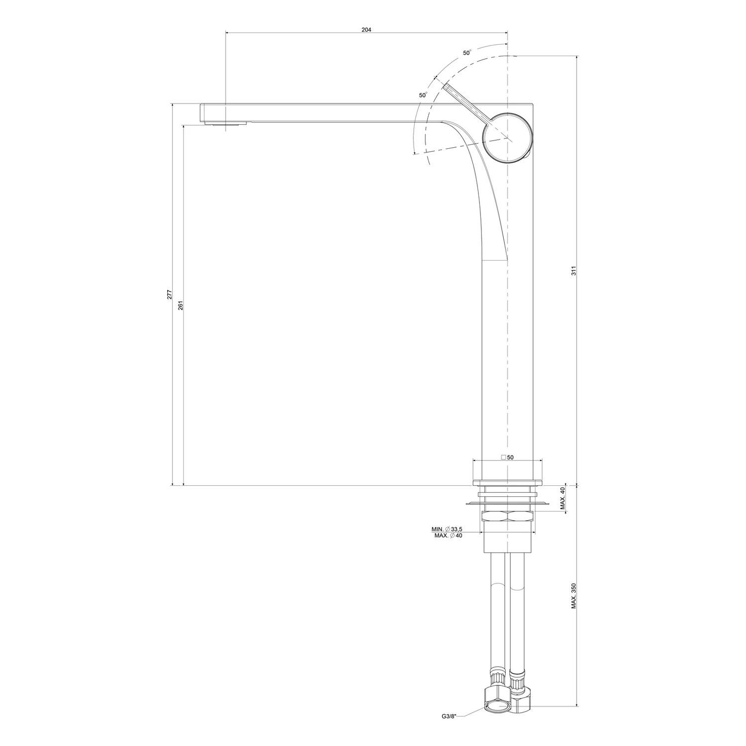 - mit flexiblen Edelstahl-Anschlussschläuchen 3/8" DVGW zertifiziert L: 45 cm