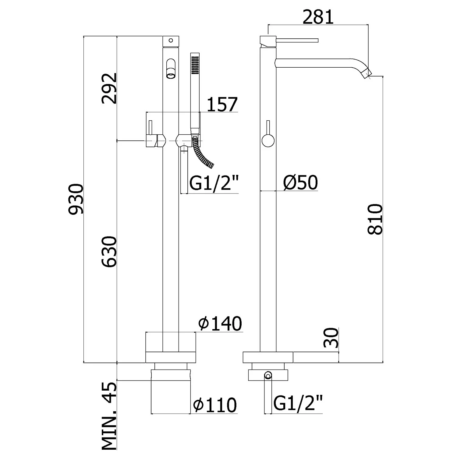 Kronenbach Lima 2.0 Black freistehende Wannenarmatur