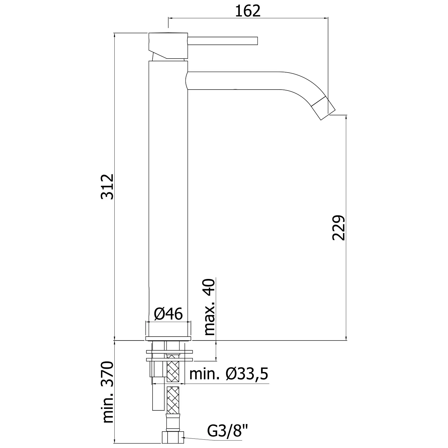 - mit flexiblen Edelstahl-Anschlussschläuchen 3/8" DVGW zertifiziert (KTW zugelassen) 45 cm