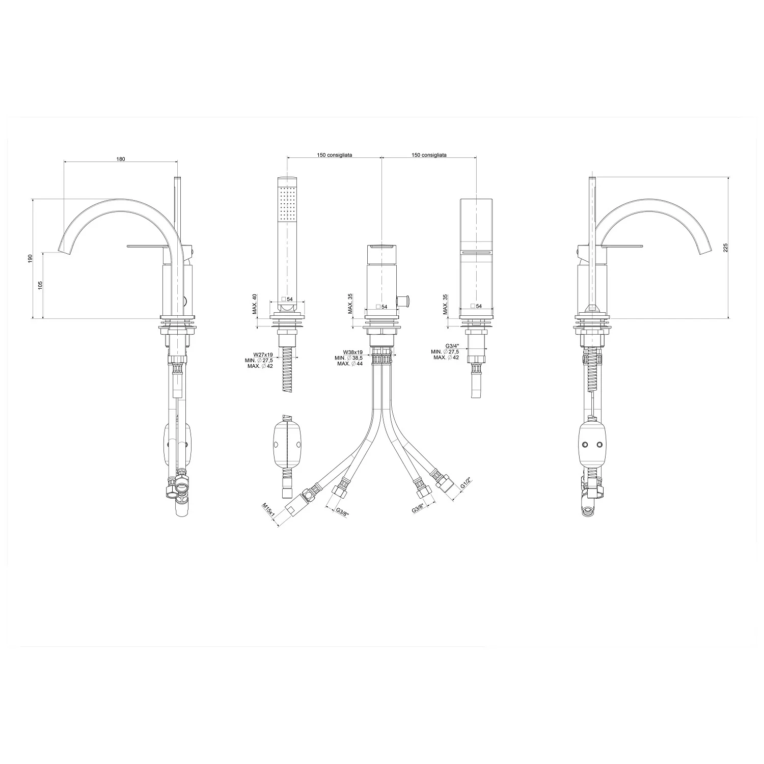 - Wanneneinlauf H: 19 Ausladung 18 cm