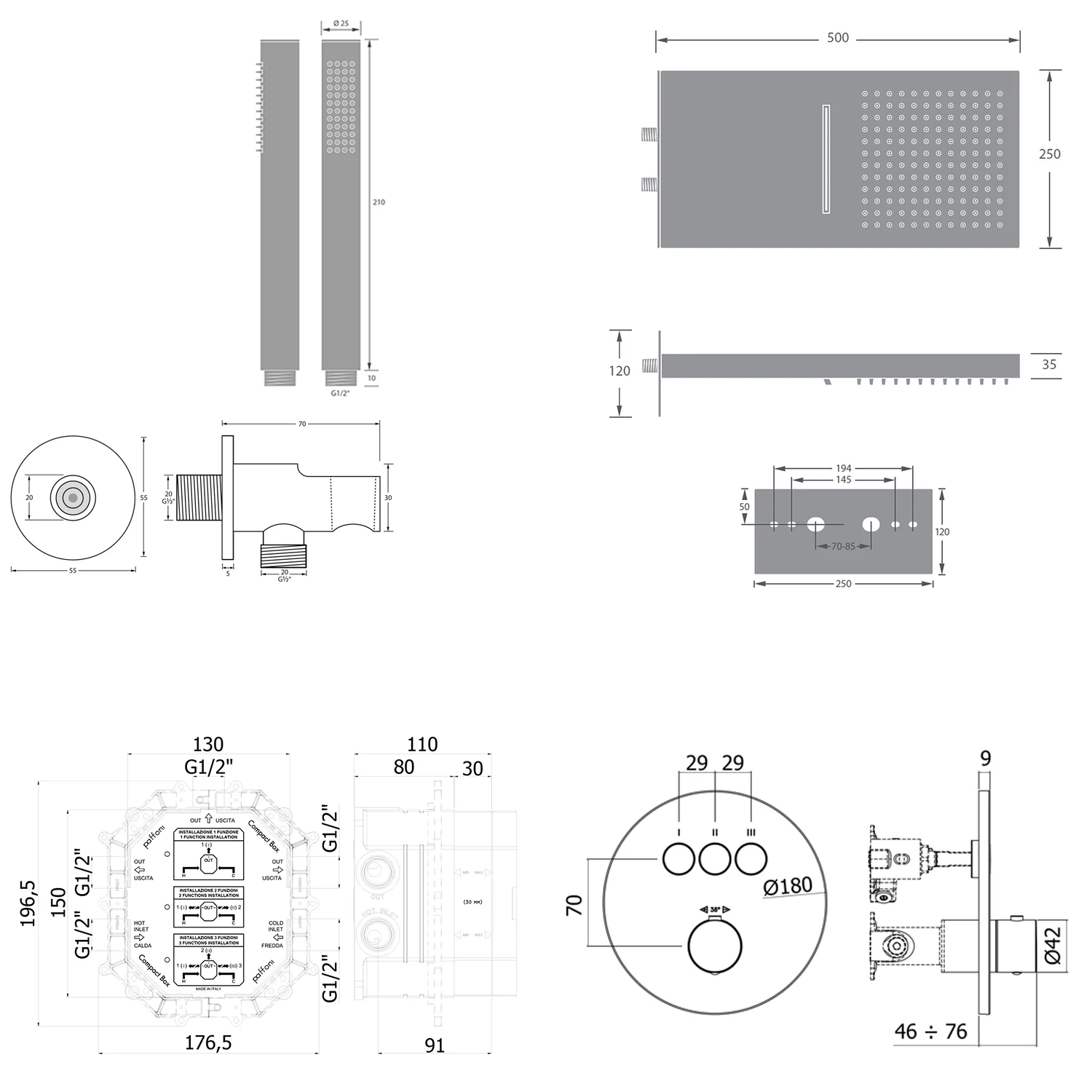 Kronenbach Smart Push Thermostat Duschsystem Unterputz für 3 Verbraucher, rund