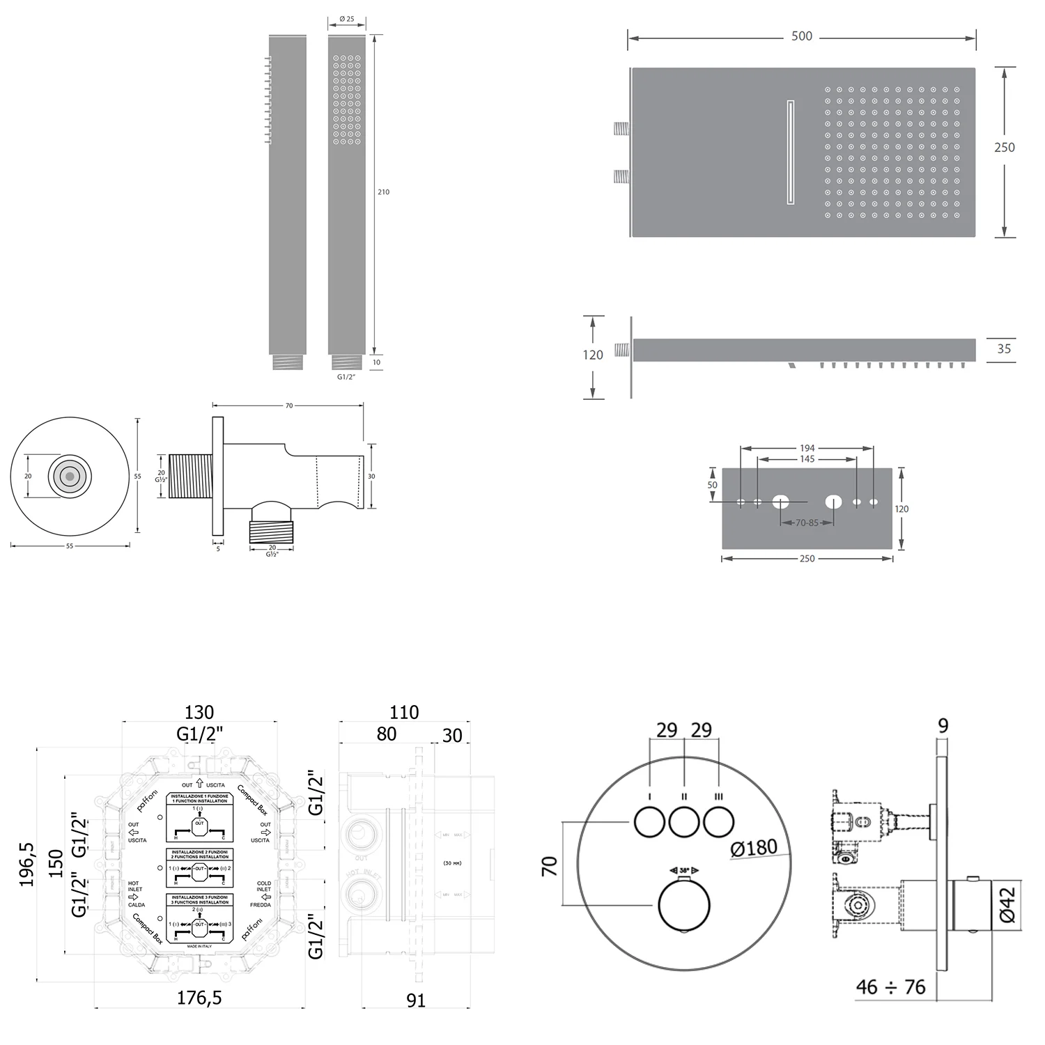 - 2 Zuläufe und 3 Abgänge in 1/2"