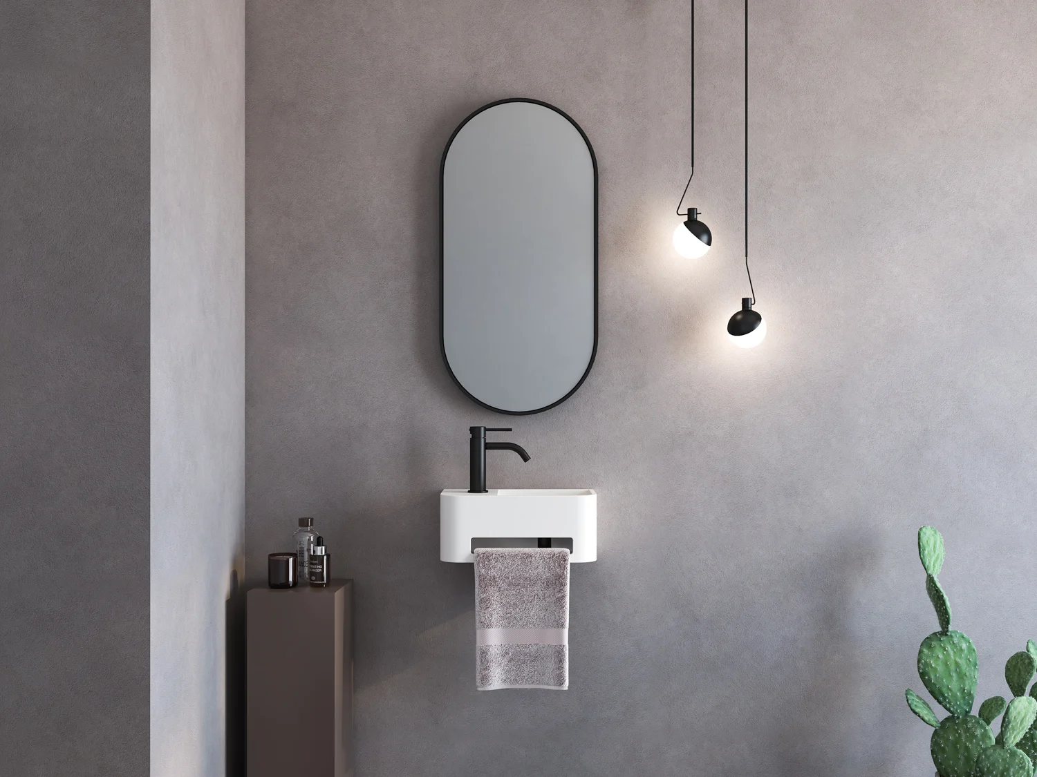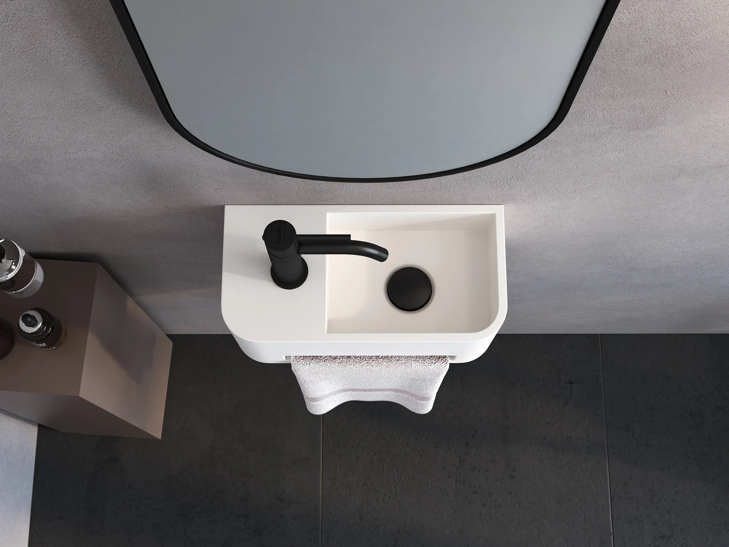 Kronenbach Stone Handwaschbecken 38 x 19 cm Becken rechts mit Hahnlochbohrung, mit Handtuchhalterung