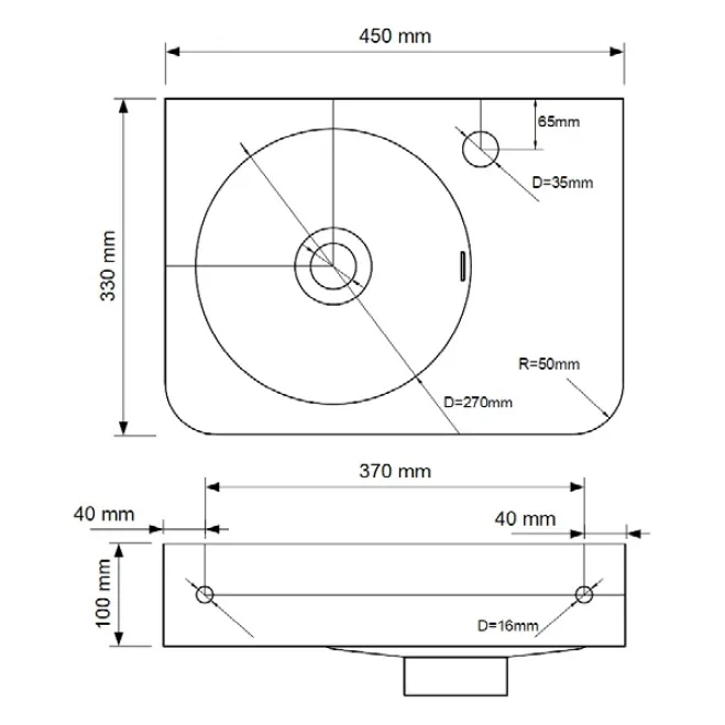 Kronenbach Stone Handwaschbecken 45 x 33 cm Becken links mit Hahnlochbohrung