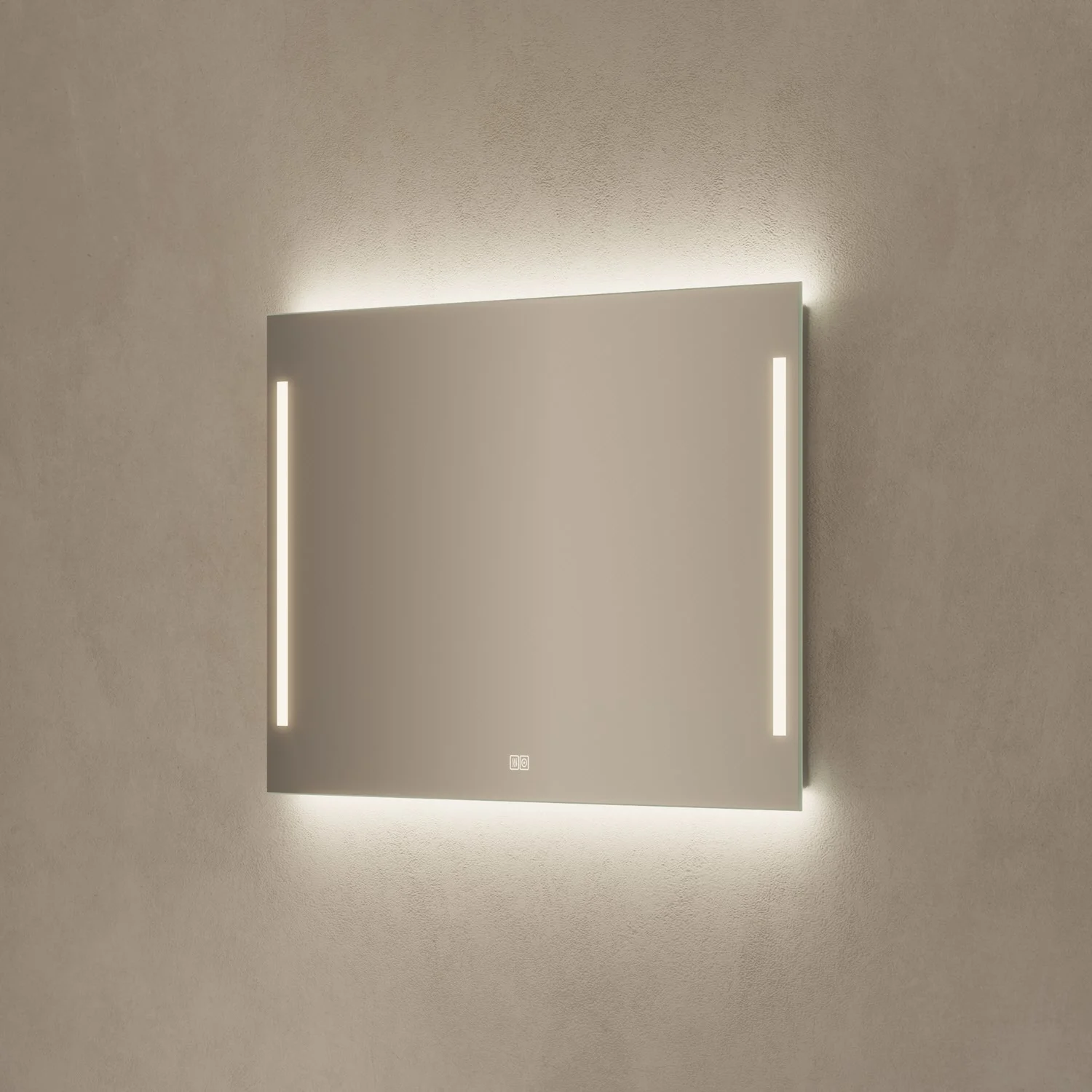 - mit in die Spiegelfläche integrierten Touch-Schaltern für an/aus, Dimmfunktion und Antibeschlag