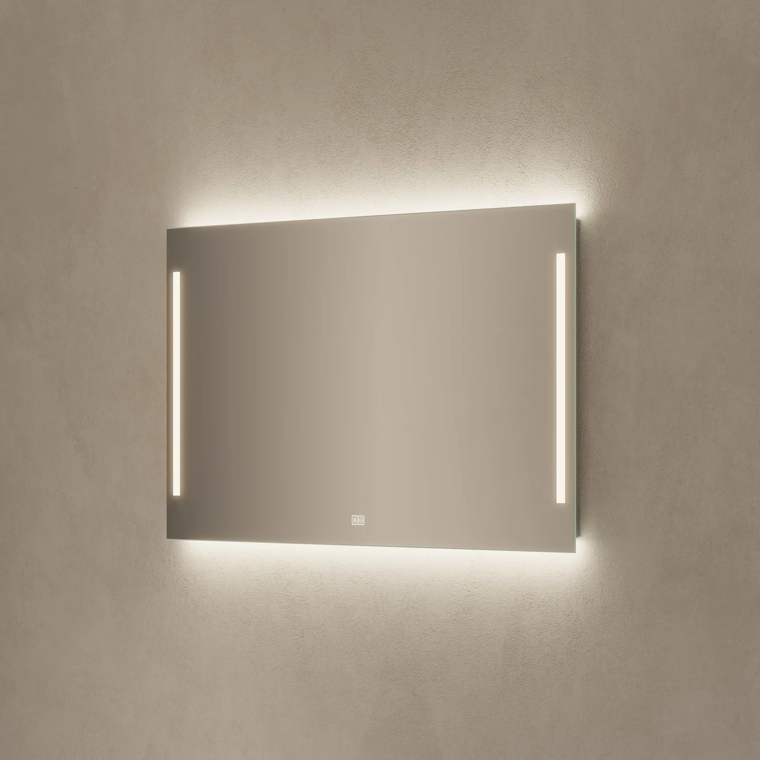 - mit in die Spiegelfläche integrierten Touch-Schaltern für an/aus, Dimmfunktion und Antibeschlag