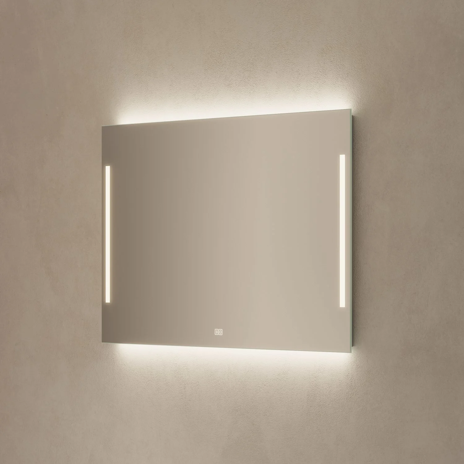 - mit in die Spiegelfläche integrierten Touch-Schaltern für an/aus, Dimmfunktion und Antibeschlag