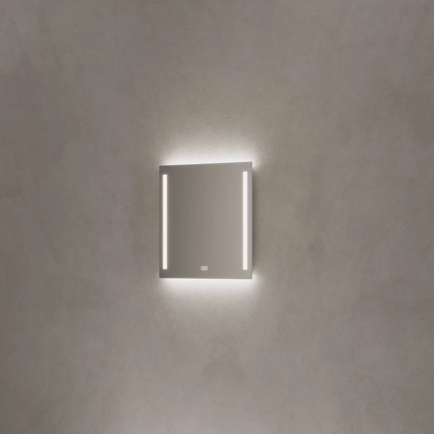 - mit in die Spiegelfläche integrierten Touch-Schaltern für an/aus, Dimmfunktion und Antibeschlag