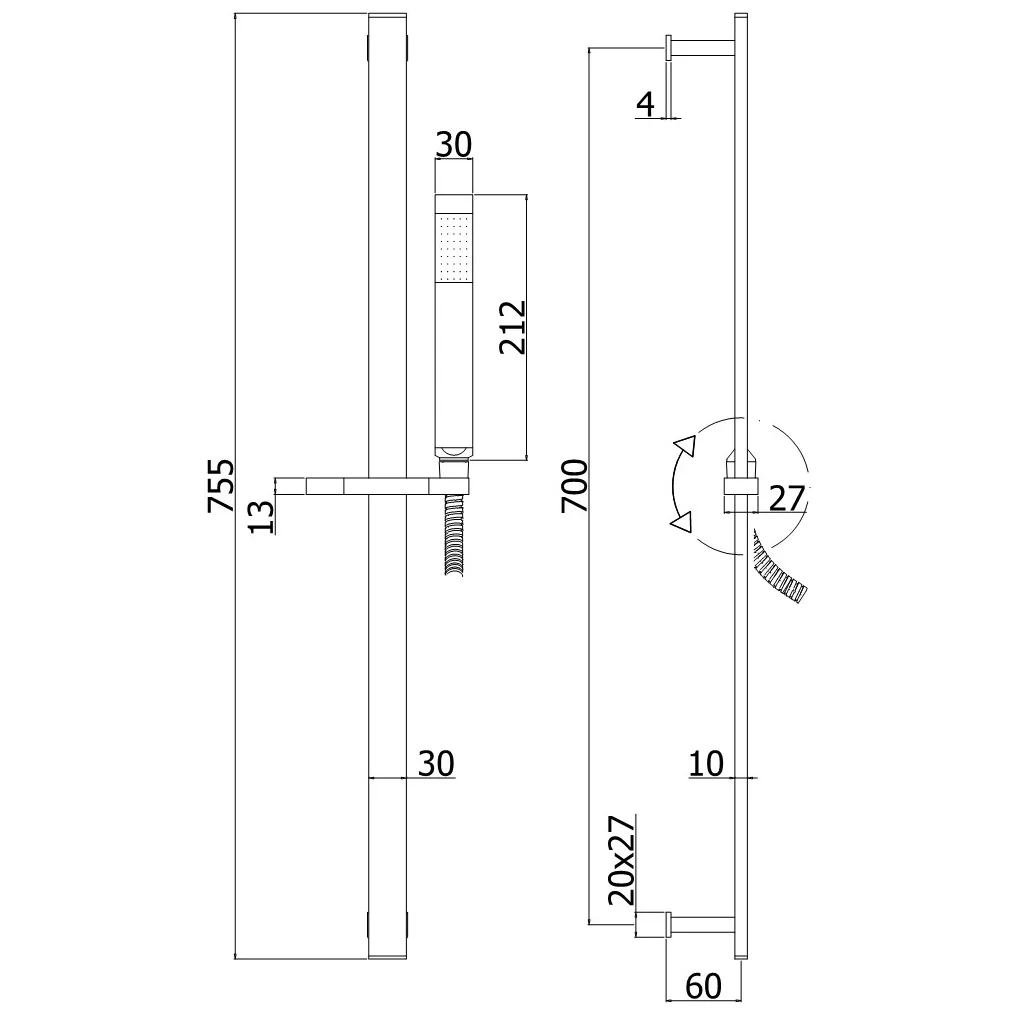 Kronenbach SUPRA Brauseset mit Stabhandbrause und Wandstange
