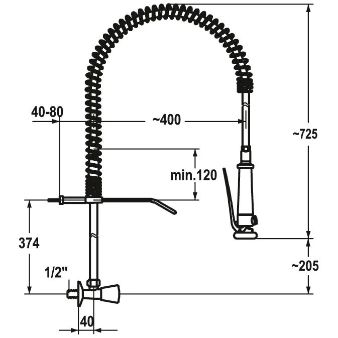 KWC Gastro Wandventil mit Geschirrwaschbrause für die Profiküche