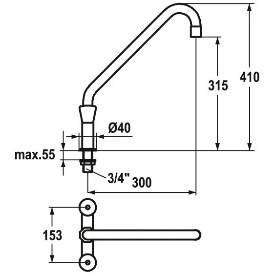 KWC Gastro Zweigriff-Spültisch-Brückenbatterie für die Profiküche, Höhe 41 cm
