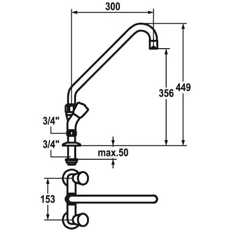 KWC Gastro Zweigriff-Spültisch-Brückenbatterie für die Profiküche, Höhe 44,9 cm