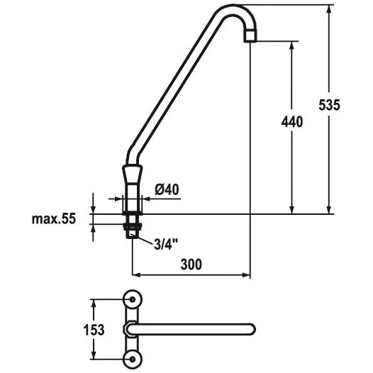 KWC Gastro Zweigriff-Spültisch-Brückenbatterie für die Profiküche, Höhe 53,5 cm