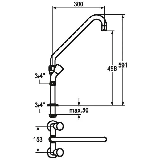 KWC Gastro Zweigriff-Spültisch-Brückenbatterie mit hohem Sockel für die Profiküche