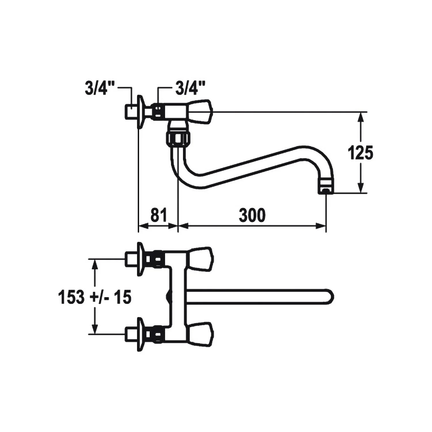 KWC Gastro Zweigriff Spültisch-Wandbatterie für die Profiküche