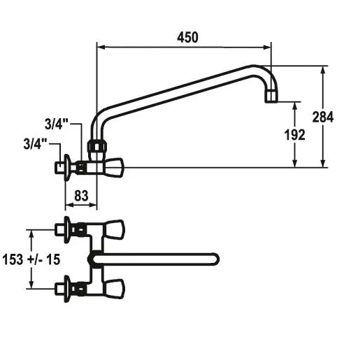KWC Gastro Zweigriff-Spültisch-Wandbatterie mit Auslauf von oben für die Profiküche, Ausladung 45 cm