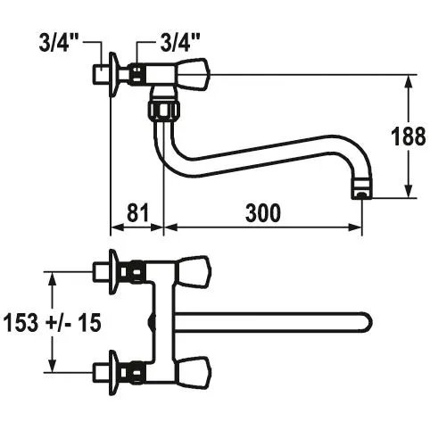 - Wandanschlüsse ¾" x ¾", nicht absperrbar L 40 exzentrisch 7.5 mm