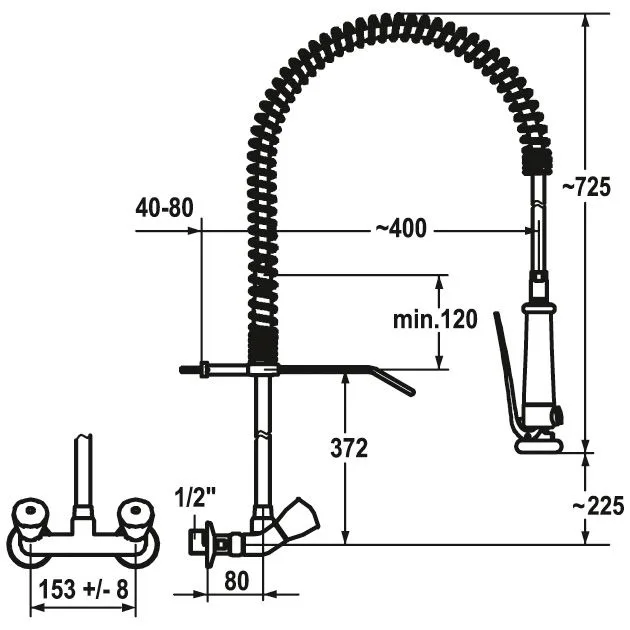 KWC Gastro Zweigriff-Spültisch-Wandbatterie mit Geschirrwaschbrause für die Profiküche