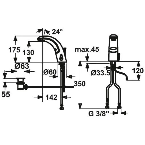 - Wassernachlaufzeit einstellbar (1 Sekunde Werkseinstellung)