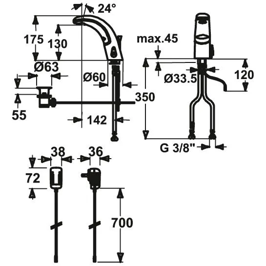 - Wassernachlaufzeit einstellbar (1 Sekunde Werkseinstellung)