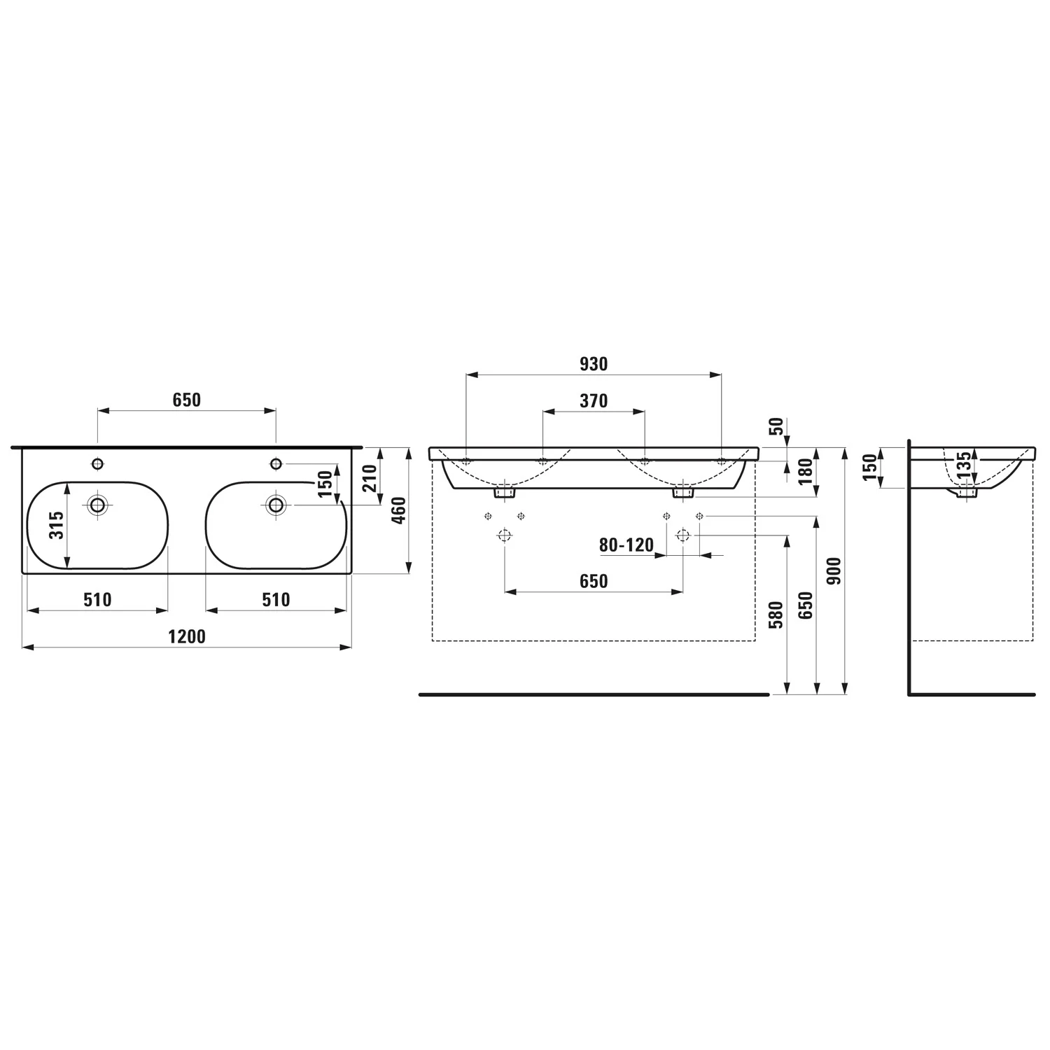 LAUFEN LUA Doppelwaschtisch 120 x 46 cm mit Hahnloch, ohne Überlauf