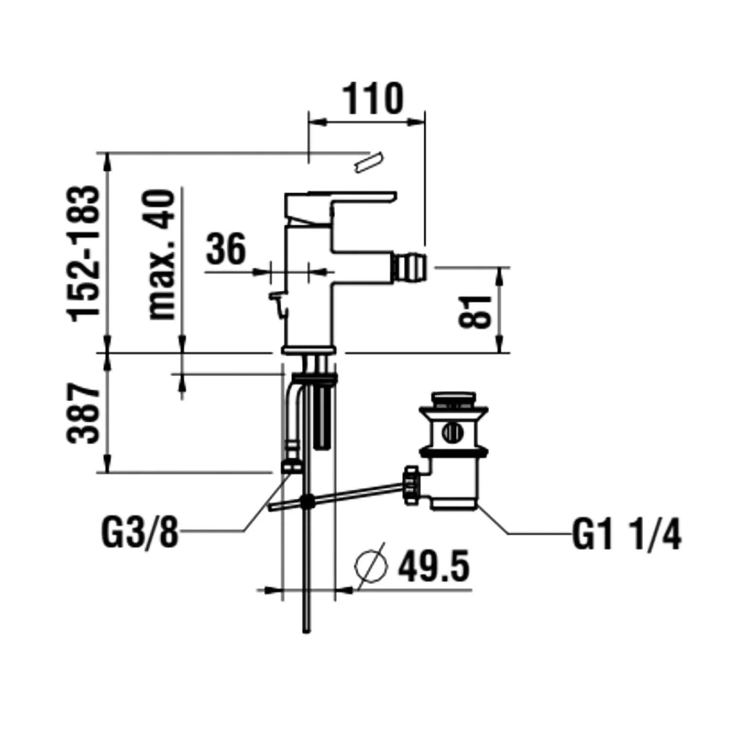 LAUFEN LUA Einhebel-Bidetmischer mit Ablaufgarnitur