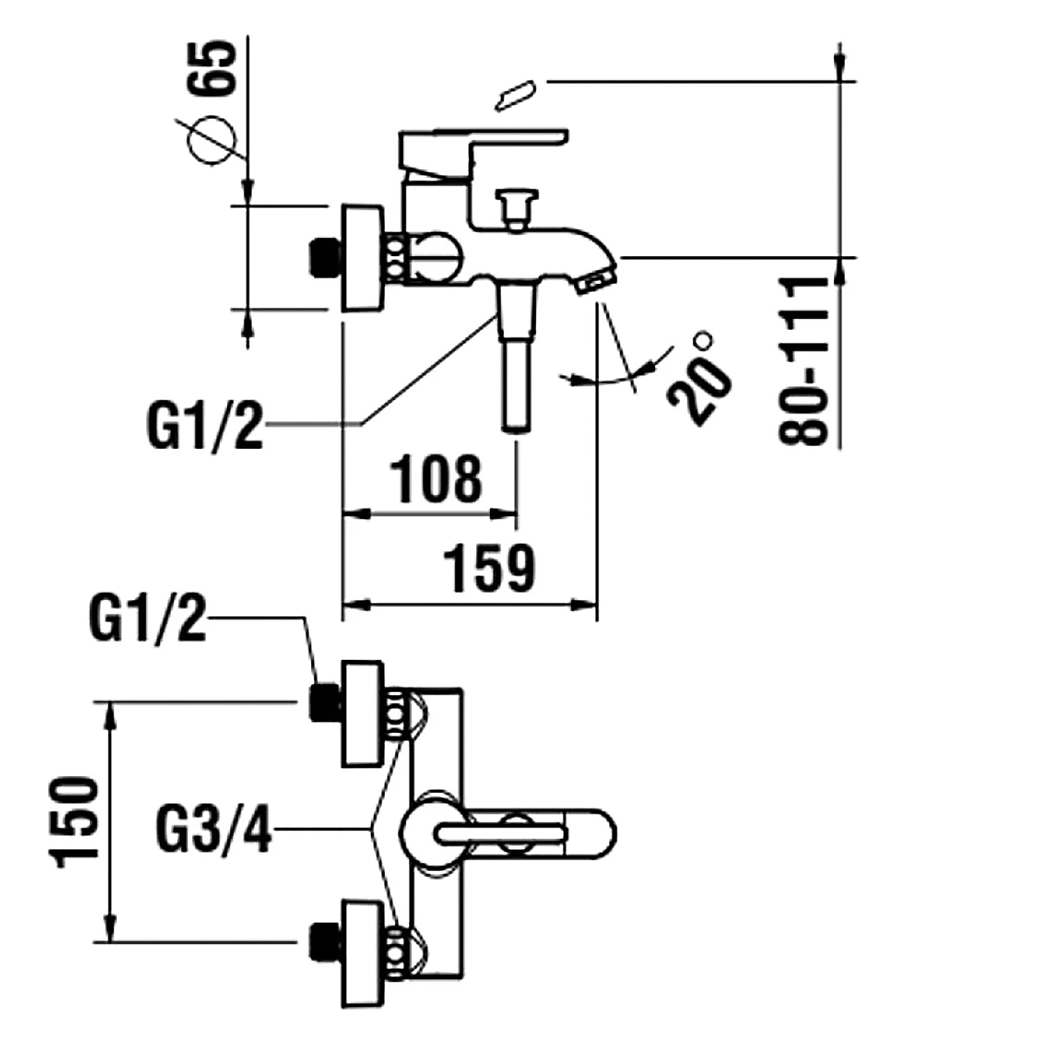 LAUFEN LUA Einhebel-Wannenmischer AP mit Zubehör