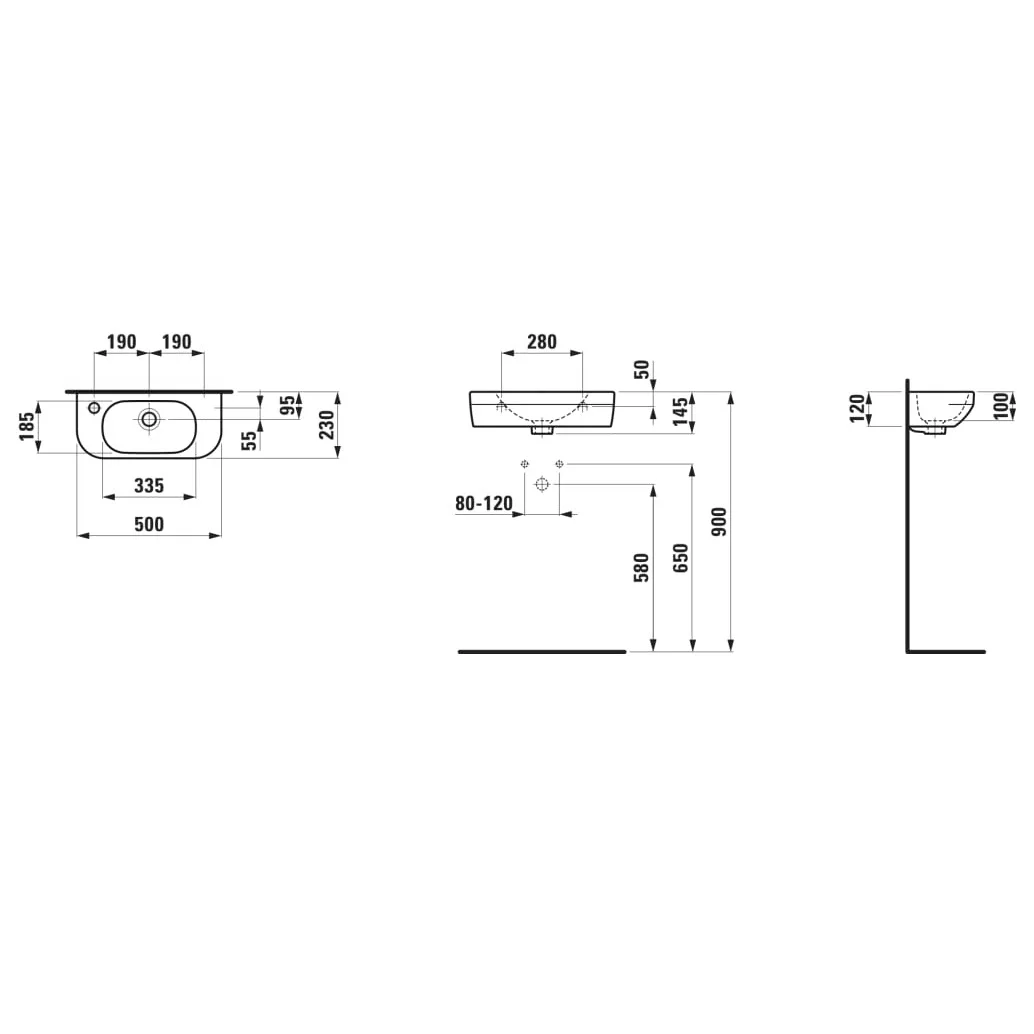 LAUFEN LUA Handwaschbecken 50 x 23 cm, Becken rechts mit Überlauf