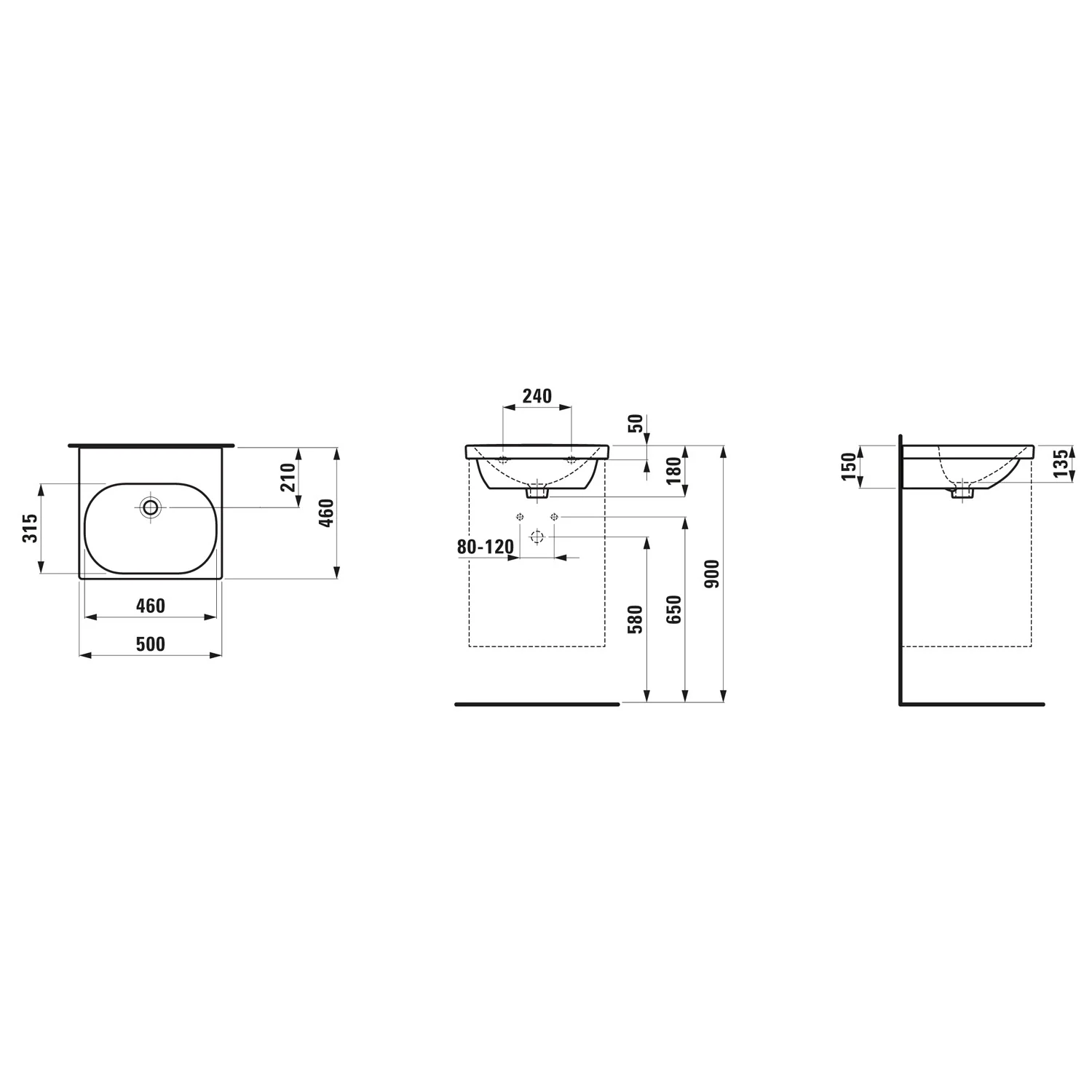 LAUFEN LUA Waschtisch 50 x 46 cm ohne Hahnloch, mit Überlauf