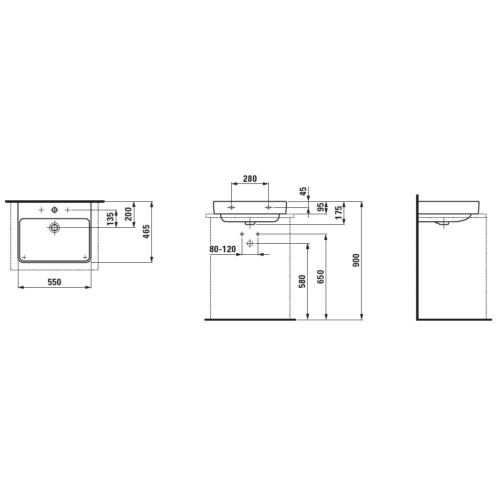 LAUFEN PRO S Aufsatzwaschtisch 55 x 46,5 cm mit 1 Hahnloch
