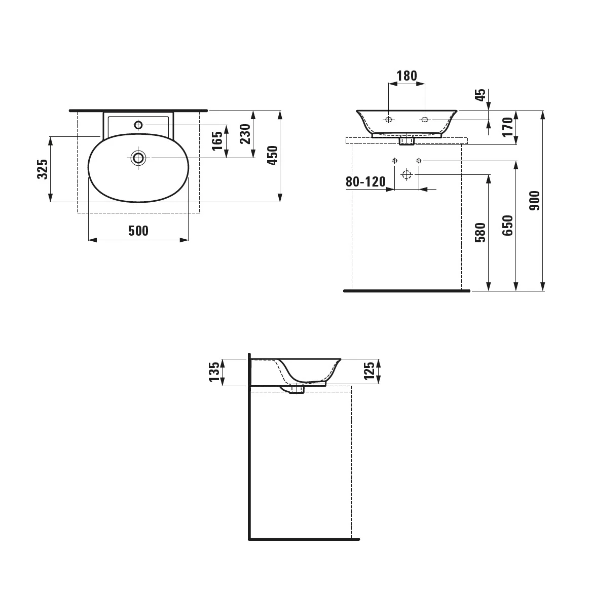 LAUFEN The New Classic Aufsatzhandwaschbecken 50 x 45 cm, mit 1 Hahnloch