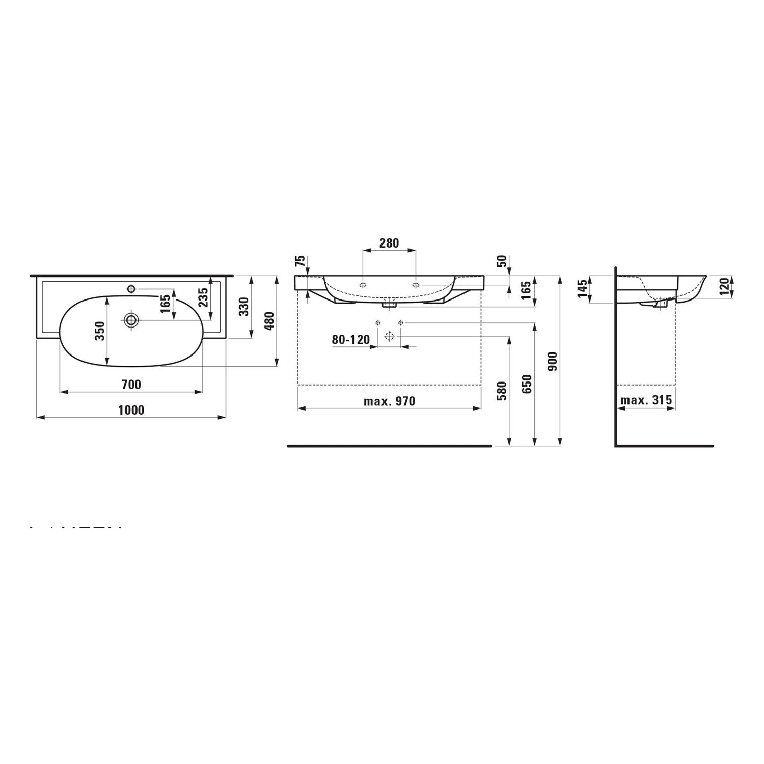LAUFEN The New Classic Möbelwaschtisch 100 x 48 cm, mit 1 Hahnloch, mit Überlauf