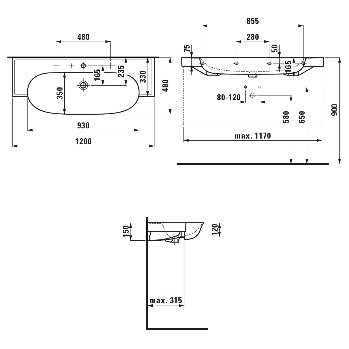 LAUFEN The New Classic Möbelwaschtisch 120 x 48 cm, mit 1 Hahnloch, mit Überlauf