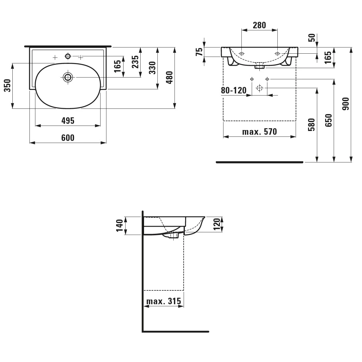 LAUFEN The New Classic Möbelwaschtisch 60 x 48 cm, mit 1 Hahnloch, mit Überlauf
