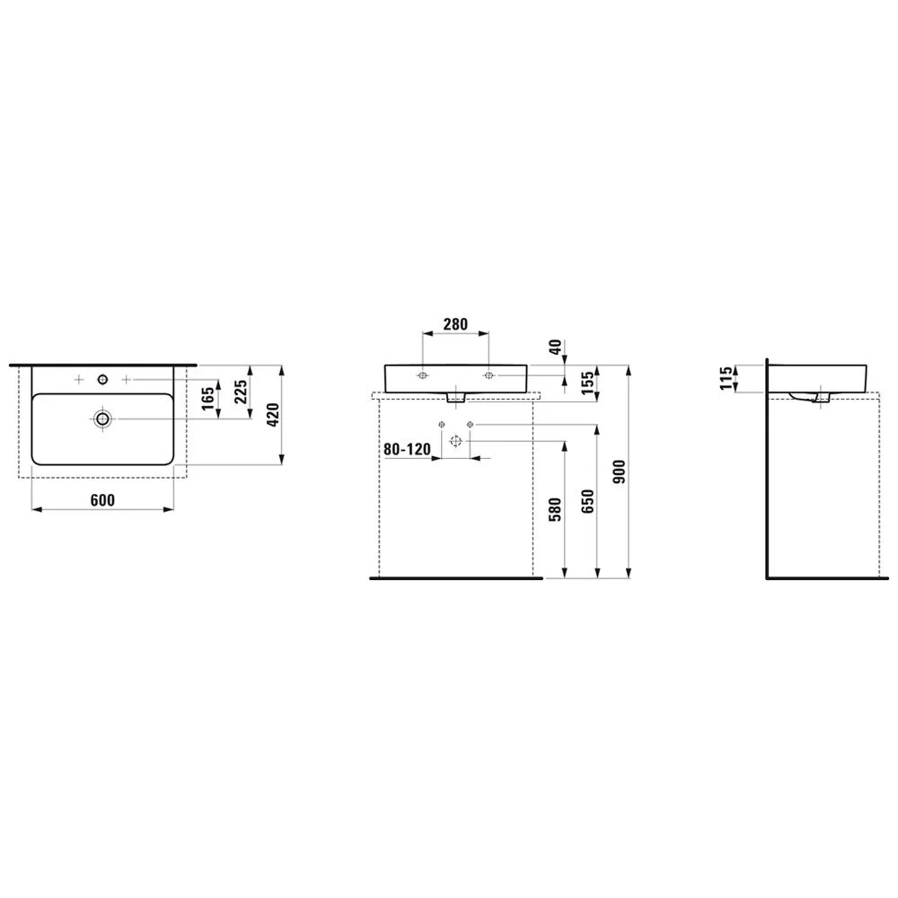 LAUFEN Val Aufsatzwaschtisch 60 x 42 cm ohne Hahnloch, mit Überlauf
