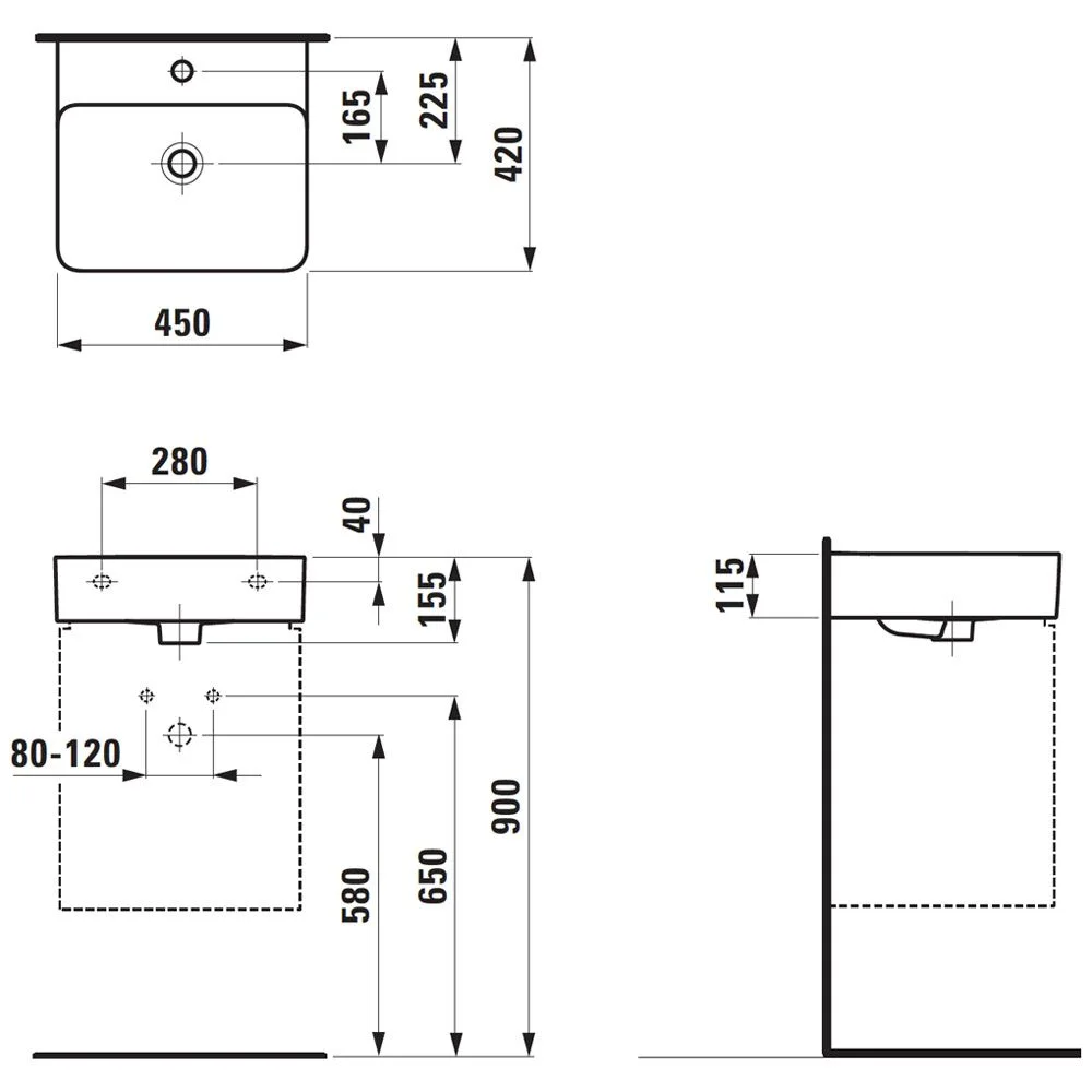 LAUFEN Val Handwaschbecken 45 x 42 cm mit Hahnloch, ohne Überlauf