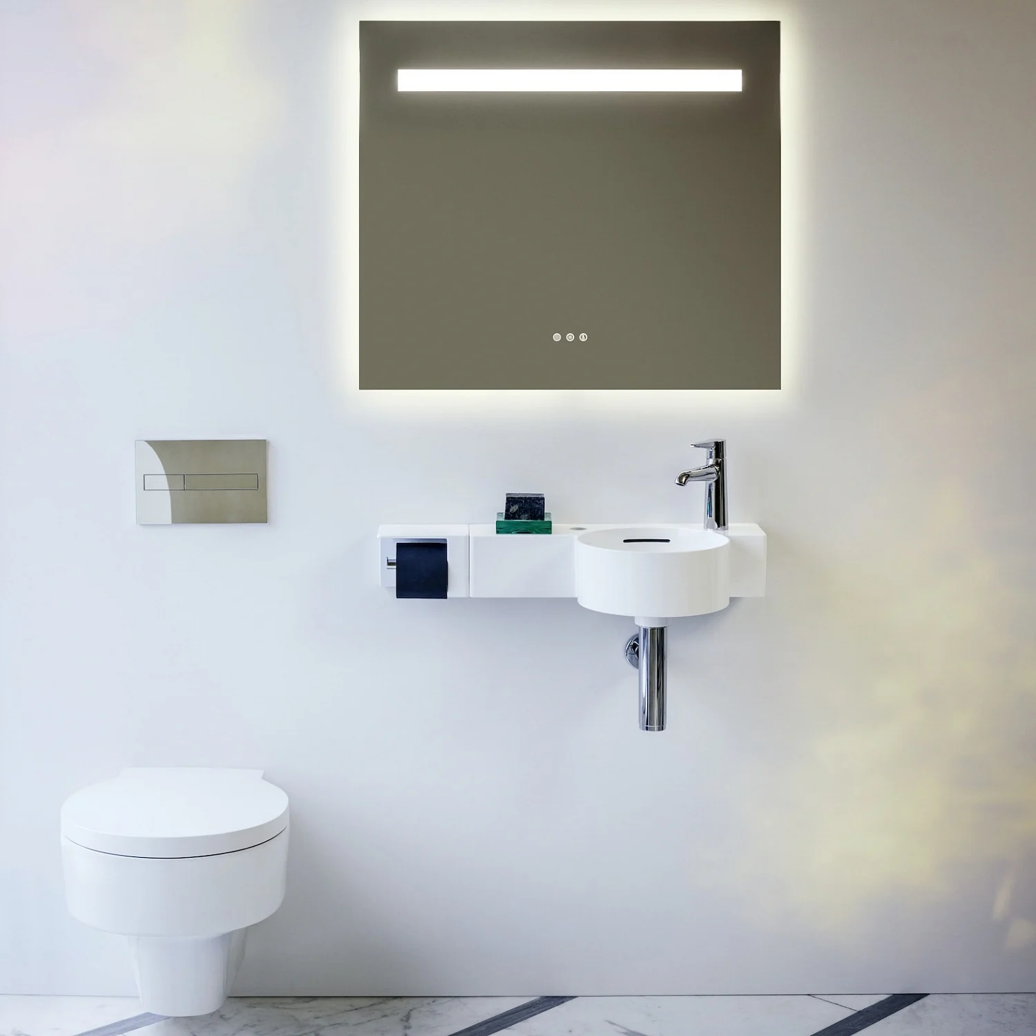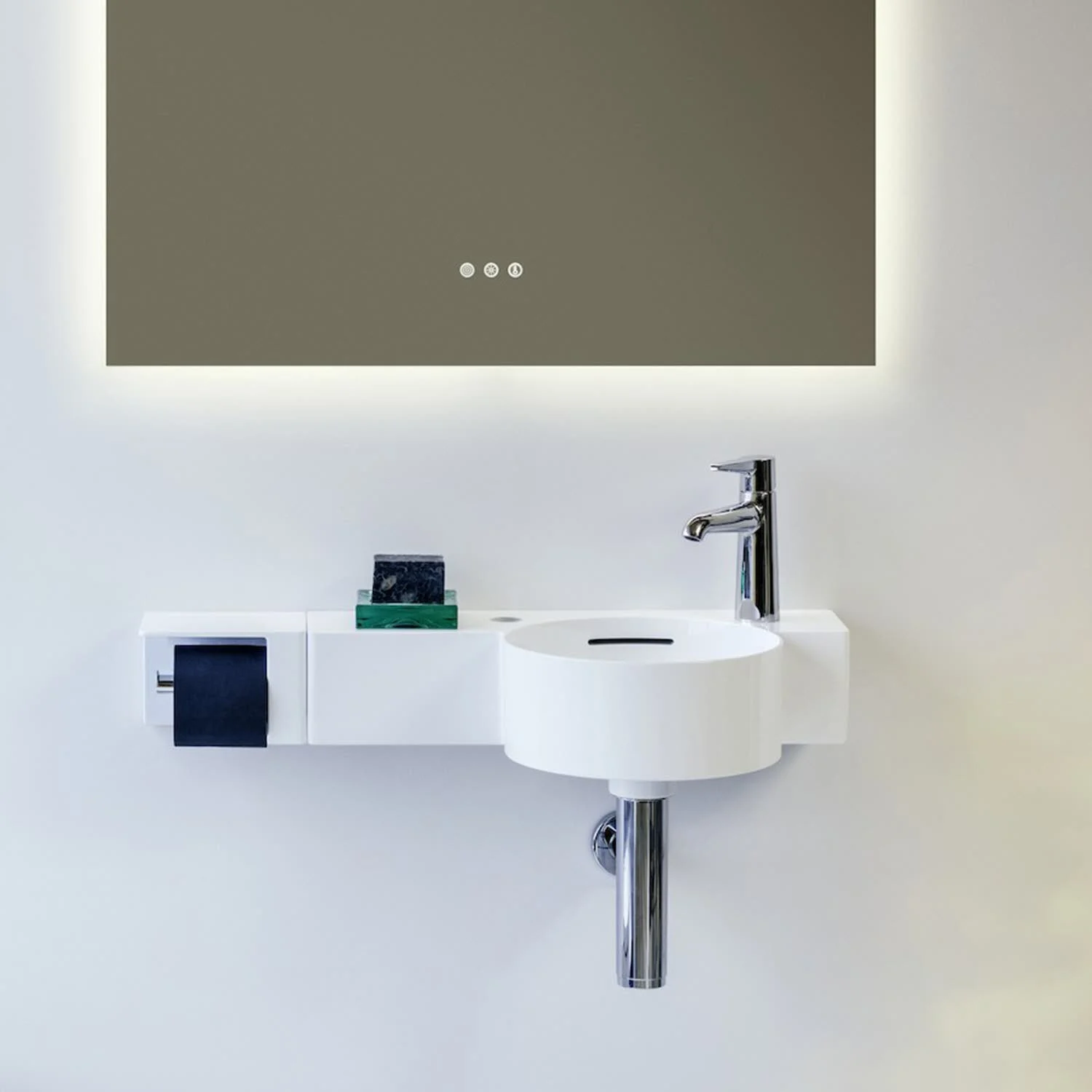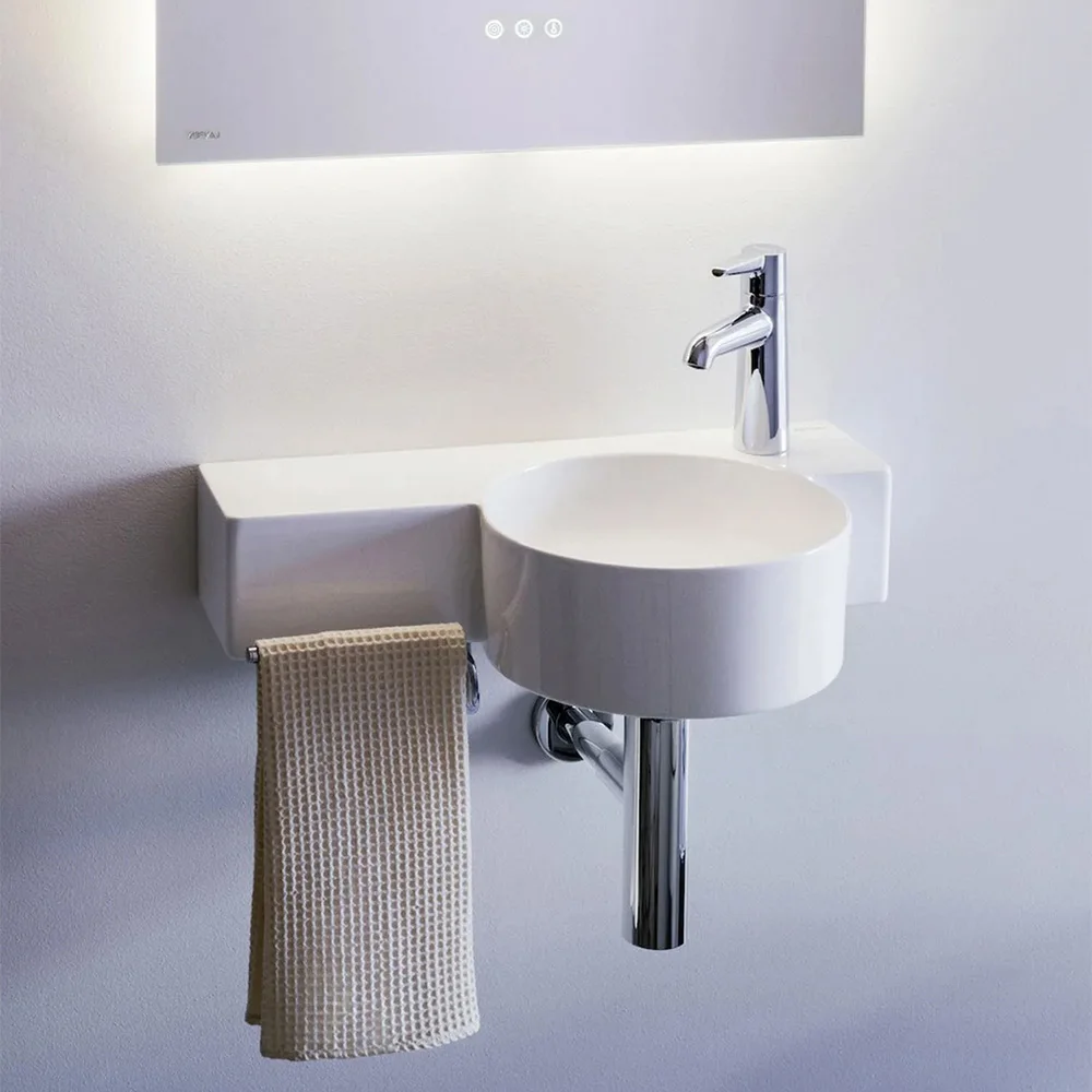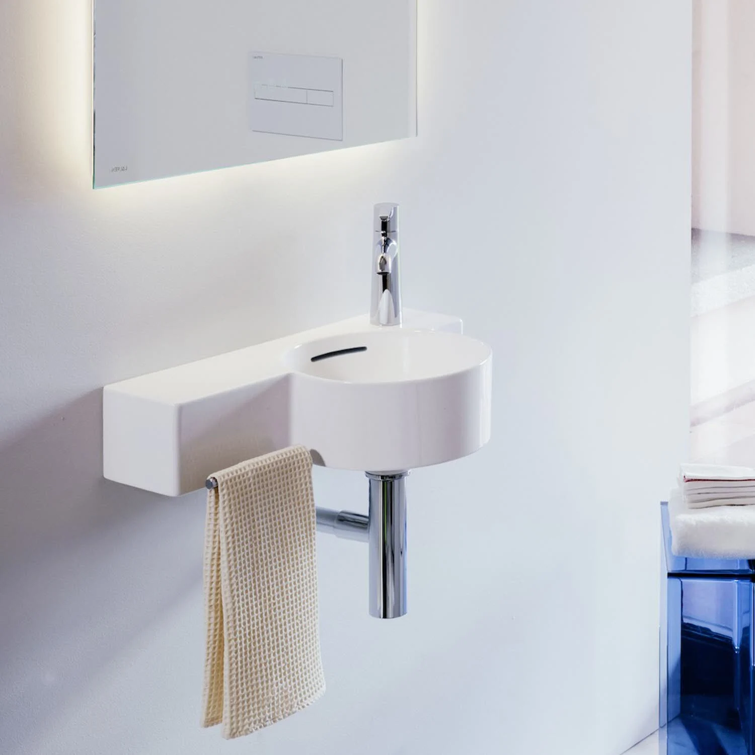 LAUFEN Val Handwaschbecken 55 x 31,5 cm, Ablage links, mit 1 Hahnloch rechts, ohne Überlauf